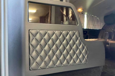 シートもダイヤモンドステッチを入れて張替えたり、パワーシートの移設、専用カーテンのお取付けなど施工させて頂きました。