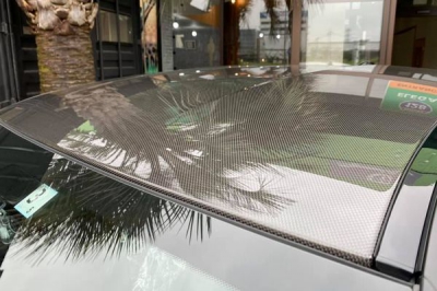 ヘッドライト、ルーフカーボンは透明の傷防止フィルムのプロテクションフィルム施工しました